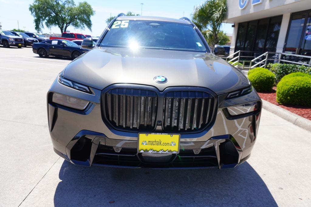 This 2025 BMW X7 xDrive40i in Manhattan Green Metallic includes the following features: 3.0L I6 DOHC 24V 8-Speed Automatic Sport AWD Climate Comfort Package (5-Zone Automatic Climate Control, Front and Rear Heated Seats, and Front Ventilated Seats), Connected Package Pro, M Sport Package, M Sport Package Pro, M Sport Professional Package (Extended Shadowline Trim, Illuminated Kidney Grille, M Sport Brakes with Black Calipers, and M Sport Exhaust System), Parking Assistance Package (Drive Recorder, Parking Assistant Professional, and Parking View with 3D View (Surround View)), Premium Package (Gesture Control, Harman/Kardon Surround Sound System, Rear Electric Side Window Shades, and Soft-Close Automatic Doors), 10 Speakers, 2nd Row Captain's Chairs, 3.64 Axle Ratio, 3rd row seats: split-bench, 4-Wheel Disc Brakes, ABS brakes, Adaptive suspension, Aerodynamic Kit, Air Conditioning, Alloy wheels, AM/FM radio: SiriusXM with 360L, AM/FM Stereo, Anthracite Alcantara Headliner, Apple CarPlay and Android Auto Compatibility, Apple CarPlay Compatibility, Auto High-beam Headlights, Auto tilt-away steering wheel, Auto-dimming door mirrors, Auto-dimming Rear-View mirror, Auto-leveling suspension, Automatic temperature control, BMW Assist ECall, BMW TeleServices, Brake assist, Bumpers: body-color, Compass, ConnectedDrive Services, Delay-off headlights, Driver door bin, Driver vanity mirror, Dual front impact airbags, Dual front side impact airbags, Electronic Stability Control, Emergency communication system: BMW Assist eCall, Exterior Parking Camera Rear, Four wheel independent suspension, Front anti-roll bar, Front Bucket Seats, Front Center Armrest, Front dual zone A/C, Front reading lights, Fully automatic headlights, Garage door transmitter, Genuine wood console insert, Genuine wood dashboard insert, Genuine wood door panel insert, Glass Controls, Head restraints memory, Heads-Up Display, Heated door mirrors, Heated front seats, Heated Multi-Contour Seats, Heated steering wheel, Hi-Fi Sound System, Illuminated entry, Increased Top Speed Limiter, Knee airbag, Leather Dashboard, Leather steering wheel, Live Cockpit Pro, Low tire pressure warning, M Steering Wheel, Memory seat, Navigation system: BMW Maps Navigation, Occupant sensing airbag, Outside temperature display, Overhead airbag, Panic alarm, Passenger door bin, Passenger vanity mirror, Personal ESIM 5G, Power adjustable front head restraints, Power door mirrors, Power driver seat, Power Front Seats, Power moonroof, Power passenger seat, Power steering, Power windows, Radio data system, Rain sensing wipers, Rear air conditioning, Rear anti-roll bar, Rear dual zone A/C, Rear reading lights, Rear seat center armrest, Rear window defroster, Rear window wiper, Reclining 3rd row seat, Remote keyless entry, Security system, Sensafin Upholstery, Shadowline Exterior Trim, SiriusXM Satellite Radio, Speed control, Speed-sensing steering, Speed-Sensitive Wipers, Split folding rear seat, Spoiler, Sport steering wheel, Steering wheel memory, Steering wheel mounted audio controls, Tachometer, Telescoping steering wheel, Tilt steering wheel, Traction control, Trailer Hitch, Trip computer, Turn signal indicator mirrors, Variably intermittent wipers, Wheels: 21" x 9.5" Dual-Spoke Bicolor Orbit Grey, Wheels: 22" x 9.5" Front and 22" x 10.5" Rear V-Spoke, Wireless Charging Device, and Without Lines Designation Outside. Manhattan Green Metallic 2025 BMW X7 xDrive40i AWD 8-Speed Automatic Sport 3.0L I6 DOHC 24V