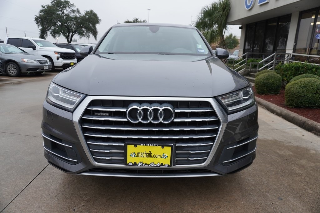 This 2018 Audi Q7 2.0T Premium in Gray Metallic includes the following features: 2.0L I4 TFSI DOHC 8-Speed Automatic with Tiptronic quattro 10 Speakers, 3.504 Axle Ratio, 3rd row seats: bench, 4-Wheel Disc Brakes, ABS brakes, Air Conditioning, Alloy wheels, AM/FM radio: SiriusXM, Auto-dimming Rear-View mirror, Automatic temperature control, Brake assist, Bumpers: body-color, CD player, Compass, Delay-off headlights, Driver door bin, Driver vanity mirror, Driver's Seat Mounted Armrest, Dual front impact airbags, Dual front side impact airbags, Electronic Stability Control, Exterior Parking Camera Rear, Four wheel independent suspension, Front anti-roll bar, Front Bucket Seats, Front dual zone A/C, Front fog lights, Front reading lights, Fully automatic headlights, Garage door transmitter: HomeLink, Genuine wood dashboard insert, Genuine wood door panel insert, Heated door mirrors, Heated Front Bucket Seats, Heated front seats, High intensity discharge headlights: Xenon plus, Illuminated entry, Leather Seating Surfaces, Leather Shift Knob, Leather steering wheel, Low tire pressure warning, Memory seat, Occupant sensing airbag, Outside temperature display, Overhead airbag, Panic alarm, Passenger door bin, Passenger seat mounted armrest, Passenger vanity mirror, Power door mirrors, Power driver seat, Power Liftgate, Power moonroof, Power passenger seat, Power steering, Power windows, Radio data system, Radio: MMI Radio Plus w/Audi Sound System, Rain sensing wipers, Rear air conditioning, Rear anti-roll bar, Rear fog lights, Rear reading lights, Rear seat center armrest, Rear window defroster, Rear window wiper, Remote keyless entry, Roof rack: rails only, Security system, Speed control, Speed-sensing steering, Split folding rear seat, Spoiler, Steering wheel mounted audio controls, Tachometer, Telescoping steering wheel, Tilt steering wheel, Traction control, Trip computer, Turn signal indicator mirrors, Variably intermittent wipers, Wheels: 18" 5-Arm-Design, and Wheels: 20" 10-Spoke-Star Design Bi-Color. Gray Metallic 2018 Audi Q7 2.0T Premium quattro quattro 8-Speed Automatic with Tiptronic 2.0L I4 TFSI DOHC