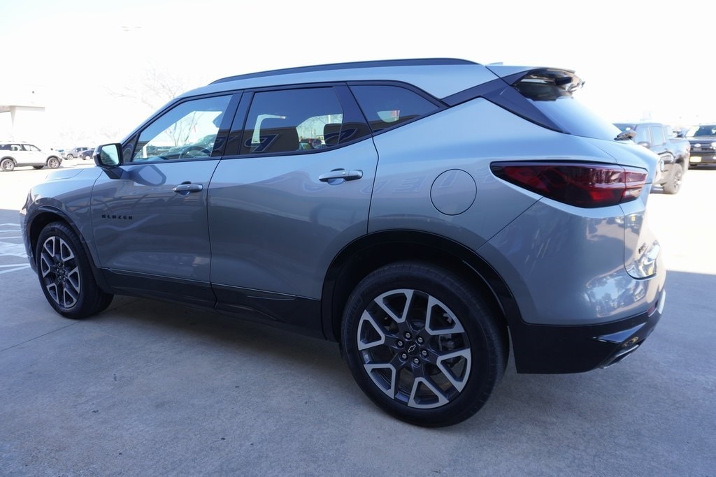 This 2025 Chevrolet Blazer RS in Sterling Gray Metallic includes the following features: 3.6L V6 SIDI 9-Speed Automatic with Overdrive FWD Preferred Equipment Group 1RS, 3.49 Final Drive Axle Ratio, 4-Wheel Disc Brakes, 6-Way Power Front Passenger Seat Adjuster, 8 Speakers, 8-Way Power Driver Seat Adjuster, ABS brakes, Air Conditioning, Alloy wheels, AM/FM radio: SiriusXM with 360L, Apple CarPlay/Android Auto, Auto High-beam Headlights, Auto-dimming door mirrors, Auto-dimming Rear-View mirror, Automatic temperature control, Bose Premium 8-Speaker Audio System Feature, Brake assist, Bumpers: body-color, Child-Seat-Sensing Airbag, Compass, Delay-off headlights, Driver door bin, Driver vanity mirror, Dual front impact airbags, Dual front side impact airbags, Electronic Stability Control, Emergency communication system: OnStar and Chevrolet connected services capable, Four wheel independent suspension, Front anti-roll bar, Front Bucket Seats, Front Center Armrest, Front dual zone A/C, Front reading lights, Fully automatic headlights, Garage door transmitter, Heated door mirrors, Heated Driver and Front Passenger Seats, Heated front seats, Heated steering wheel, Illuminated entry, Knee airbag, Leather Shift Knob, Leather steering wheel, Low tire pressure warning, Navigation System, Occupant sensing airbag, Outside temperature display, Overhead airbag, Overhead console, Panic alarm, Passenger door bin, Passenger vanity mirror, Perforated Leather-Appointed Seat Trim, Power door mirrors, Power Driver Lumbar Control, Power driver seat, Power Liftgate, Power passenger seat, Power steering, Power windows, Premium audio system: Chevrolet Infotainment 3 Premium, Radio data system, Radio: Chevrolet Infotainment 3 Premium System, Rear anti-roll bar, Rear reading lights, Rear seat center armrest, Rear window defroster, Rear window wiper, Remote keyless entry, Ride and Handling Suspension, Security system, SiriusXM with 360L, Speed control, Speed-sensing steering, Split folding rear seat, Spoiler, Steering wheel mounted audio controls, Stop-Start Engine Control System, Tachometer, Telescoping steering wheel, Tilt steering wheel, Traction control, Trip computer, Turn signal indicator mirrors, Variably intermittent wipers, Voltmeter, and Wheels: : 20" Technical Gray Aluminum. Sterling Gray Metallic CARFAX One-Owner. 2025 Chevrolet Blazer RS FWD 9-Speed Automatic with Overdrive 3.6L V6 SIDI