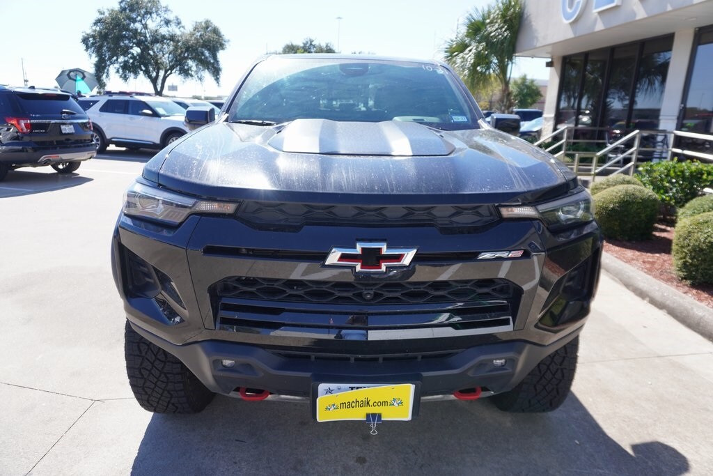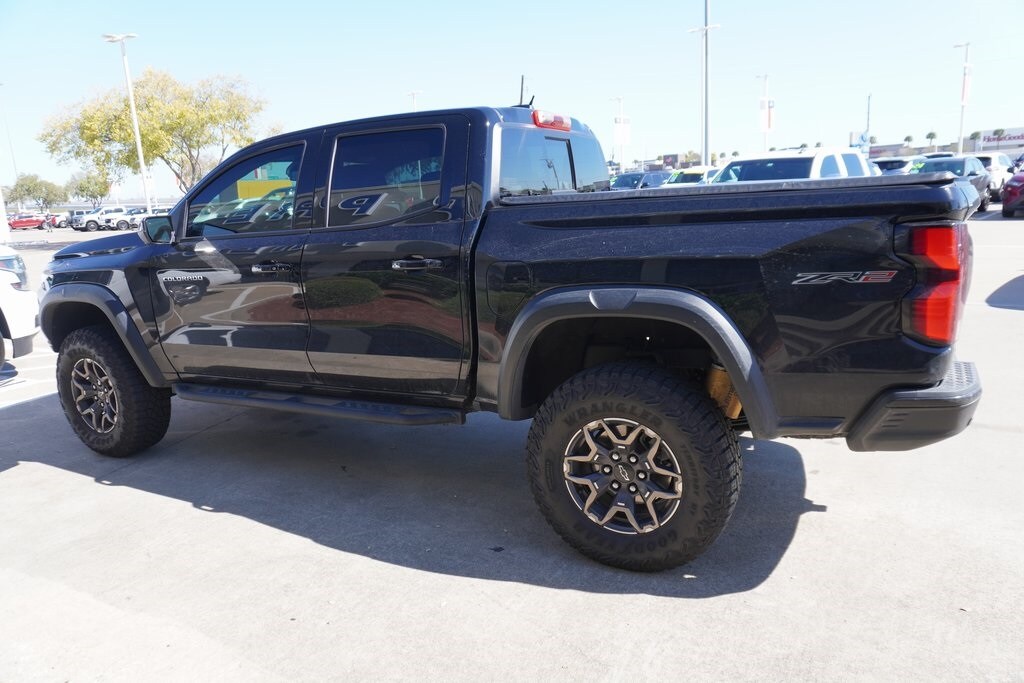 This 2025 Chevrolet Colorado ZR2 in Black includes the following features: 2.7L I4 Turbocharged DOHC 16V LEV3-ULEV50 310hp 8-Speed Automatic 4WD Preferred Equipment Group 4ZR (Automatic Emergency Braking, Chevy Safety Assist, Following Distance Indicator, Forward Collision Alert, Front Pedestrian & Bicyclist Braking, IntelliBeam Automatic High Beam On/Off, and Lane Keep Assist w/Lane Departure Warning), Technology Package (Adaptive Cruise Control, Bose Premium 7-Speaker Audio System Feature, HD Surround Vision, and Rear Pedestrian Alert), ZR2 Off-Road Package, 4WD, 3.42 Rear Axle Ratio, 4-Way Manual Passenger Seat Adjuster, 4-Wheel Disc Brakes, 6 Speakers, 6-Speaker Audio System Feature, 8-Way Power Driver Seat Adjuster, ABS brakes, Air Conditioning, Alloy wheels, AM/FM radio: SiriusXM, Apple CarPlay/Android Auto, Auto High-beam Headlights, Auto-dimming Rear-View mirror, Automatic temperature control, Brake assist, Compass, Delay-off headlights, Driver & Front Passenger Ventilated Seats, Driver door bin, Driver Memory Settings, Driver Seatback Map Pocket, Driver vanity mirror, Dual front impact airbags, Dual front side impact airbags, Electronic Stability Control, Emergency communication system: OnStar, Front anti-roll bar, Front Bucket Seats, Front Center Armrest, Front dual zone A/C, Front fog lights, Front License Plate Kit, Front Passenger Seatback Map Pocket, Front reading lights, Front wheel independent suspension, Heated door mirrors, Heated Driver & Front Passenger Seats, Heated front seats, Heated steering wheel, Illuminated entry, Low tire pressure warning, Memory seat, Navigation System, Occupant sensing airbag, Outside temperature display, Overhead airbag, Overhead console, Panic alarm, Passenger door bin, Passenger vanity mirror, Perforated Leather-Appointed Seat Trim, Power door mirrors, Power Driver Lumbar Control Seat Adjuster, Power driver seat, Power steering, Power windows, Radio data system, Radio: 11.3" Diagonal Advanced Color LCD Display, Rear reading lights, Rear seat center armrest, Rear step bumper, Rear window defroster, Remote keyless entry, Security system, SiriusXM Trial Subscription, Speed control, Speed-sensing steering, Split folding rear seat, Steering Wheel Mounted Audio Controls, Steering wheel mounted audio controls, Tachometer, Telescoping steering wheel, Tilt steering wheel, Traction control, Trip computer, Variably intermittent wipers, Ventilated front seats, Wheels: 17" x 8" Graphite & Oxide Gold Aluminum, and Wireless Phone Projection. Black 2025 Chevrolet Colorado ZR2 4WD 8-Speed Automatic 2.7L I4 Turbocharged DOHC 16V LEV3-ULEV50 310hp 4WD.
