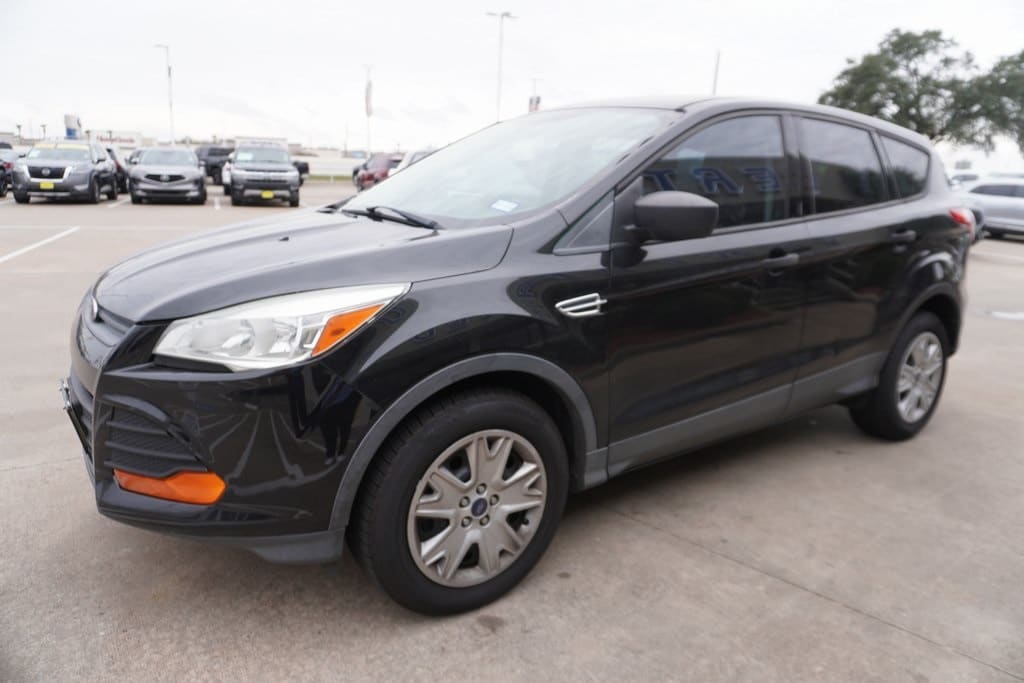 This 2013 Ford Escape S in Tuxedo Black includes the following features: Duratec 2.5L I4 6-Speed Automatic FWD Equipment Group 100A, 17" Steel Wheel w/Sparkle Silver Cover Wheels, 3.51 Axle Ratio, 4-Wheel Disc Brakes, 6 Speakers, ABS brakes, Air Conditioning, AM/FM radio, Brake assist, Bumpers: body-color, CD player, Cloth Buckets w/60/40 Split Rear Seat, Driver door bin, Driver vanity mirror, Dual front impact airbags, Dual front side impact airbags, Electronic Stability Control, Four wheel independent suspension, Front anti-roll bar, Front Bucket Seats, Front Center Armrest, Front reading lights, Illuminated entry, Knee airbag, Low tire pressure warning, Occupant sensing airbag, Overhead airbag, Overhead console, Panic alarm, Passenger door bin, Passenger vanity mirror, Power door mirrors, Power steering, Power windows, Radio data system, Radio: AM/FM Single-CD/MP3-Capable, Rear anti-roll bar, Rear window defroster, Rear window wiper, Remote keyless entry, Speed control, Speed-sensing steering, Split folding rear seat, Steering wheel mounted audio controls, SYNC w/MyFord Communications/Entertainment System, Tachometer, Telescoping steering wheel, Tilt steering wheel, Traction control, Trip computer, and Variably intermittent wipers. Tuxedo Black 2013 Ford Escape S FWD 6-Speed Automatic Duratec 2.5L I4