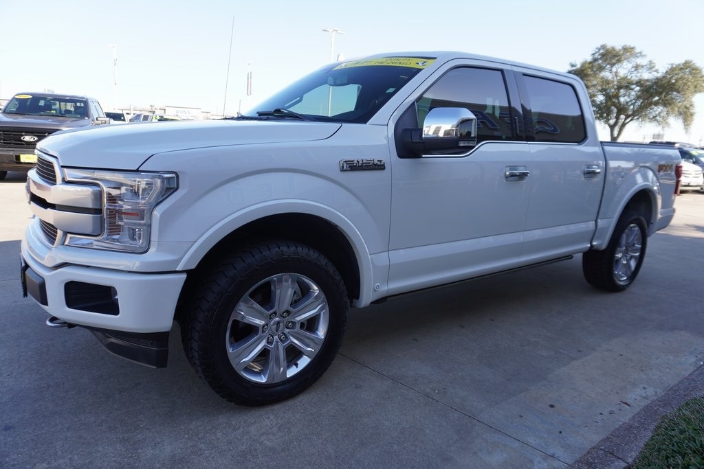 This 2020 Ford F-150 Platinum in White includes the following features: 3.5L V6 EcoBoost 10-Speed Automatic 4WD Equipment Group 701A Luxury (Tailgate Step w/Tailgate Lift Assist), FX4 Off-Road Package (Tray Style Floor Liner), GVWR: 7,050 lbs Payload Package, Max Trailer Tow Package (Class IV Trailer Hitch Receiver, Extended Range 36 Gallon Fuel Tank, Integrated Trailer Brake Controller, and Pro Trailer Backup Assist), Technology Package, 4WD, 10 Speakers, 20" Polished Aluminum Wheels, 4-Wheel Disc Brakes, ABS brakes, Adaptive Cruise Control, Adjustable pedals, Air Conditioning, Alloy wheels, AM/FM radio: SiriusXM, Auto High-beam Headlights, Auto tilt-away steering wheel, Auto-dimming door mirrors, Auto-dimming Rear-View mirror, Automatic temperature control, Black Unique Multi-Contour Leather Bucket Seats, Brake assist, Bumpers: body-color, Compass, Delay-off headlights, Driver door bin, Driver vanity mirror, Dual front impact airbags, Dual front side impact airbags, Electronic Stability Control, Emergency communication system: SYNC 3 911 Assist, Exterior Parking Camera Rear, Front anti-roll bar, Front Bucket Seats, Front Center Armrest, Front dual zone A/C, Front fog lights, Front reading lights, Front wheel independent suspension, Fully automatic headlights, Garage door transmitter, Genuine wood door panel insert, Heated door mirrors, Heated front seats, Heated rear seats, Heated steering wheel, Illuminated entry, Low tire pressure warning, Memory seat, Navigation System, Occupant sensing airbag, Outside temperature display, Overhead airbag, Overhead console, Panic alarm, Passenger door bin, Passenger vanity mirror, Pedal memory, Power door mirrors, Power driver seat, Power passenger seat, Power steering, Power windows, Radio data system, Radio: B&O Sound System by Bang & Olufsen, Rain sensing wipers, Rear Parking Sensors, Rear reading lights, Rear seat center armrest, Rear step bumper, Rear window defroster, Remote keyless entry, Security system, SiriusXM Radio, Speed control, Speed-sensing steering, Split folding rear seat, Steering wheel memory, Steering wheel mounted audio controls, SYNC 3, Tachometer, Telescoping steering wheel, Tilt steering wheel, Traction control, Trip computer, Turn signal indicator mirrors, Twin Panel Moonroof, Variably intermittent wipers, Ventilated front seats, Voice-Activated Touchscreen Navigation, and Voltmeter. White CARFAX One-Owner. 2020 Ford F-150 Platinum 4WD 10-Speed Automatic 3.5L V6 EcoBoost 4WD.