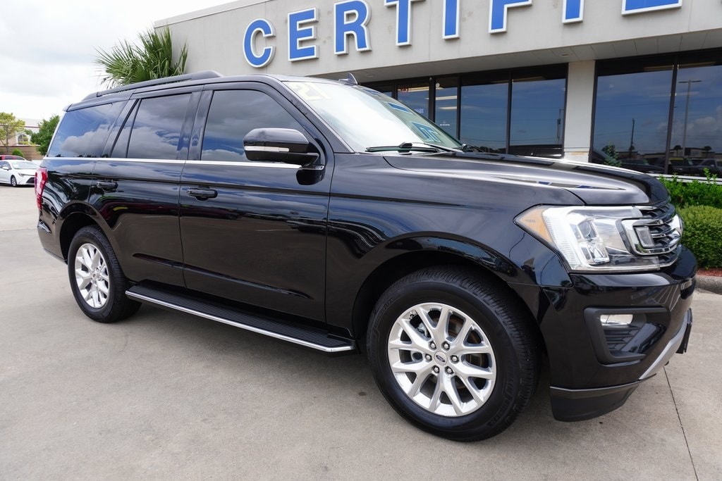 This 2021 Ford Expedition XLT in Black includes the following features: EcoBoost 3.5L V6 GTDi DOHC 24V Twin Turbocharged 10-Speed Automatic 4WD Equipment Group 202A High Package (110V/150W AC Power Outlet, 2 Smart Charging USB-A Ports In 3rd Row, 2nd Row 40/20/40 Tip & Slide Seat, 3rd Row Power-Folding Head Restraints, 3rd Row Vinyl Seat, 4-Door Intelligent Access (Lock/Unlock), ActiveX-Trimmed 1st & 2nd Row Seats, Advanced Security Pack, Chrome Platform Running Boards, Heated Steering Wheel, Heated/Ventilated Front Seats, Instrument Panel Cluster, Power Liftgate, Power Tilt/Telescopic Steering Wheel w/Memory, Power-Folding Sideview Mirrors w/Autofold, Remote Start, Santa Cruz Vinyl-Wrapped Center Console Side Rails, SecuriCode Keyless Entry Pad, and Wireless Charging Pad), Ford Co-Pilot360 Assist (Adaptive Cruise Control and Voice-Activated Touch-Screen Navigation System), 4WD, 18" Machined-Face Aluminum Wheels, 20" Polished Aluminum Wheels, 2nd Row ActiveX Captains Chairs w/Armrest, 3.31 Axle Ratio, 3rd row seats: split-bench, 4-Wheel Disc Brakes, 6 Speakers, ABS brakes, Air Conditioning, Alloy wheels, AM/FM radio: SiriusXM, Auto High-beam Headlights, Auto-dimming Rear-View mirror, Automatic temperature control, Brake assist, Bumpers: body-color, Cloth Front Captain's Chairs, Compass, Delay-off headlights, Driver door bin, Driver vanity mirror, Dual front impact airbags, Dual front side impact airbags, Electronic Stability Control, Emergency communication system: SYNC 3 911 Assist, Exterior Parking Camera Rear, Four wheel independent suspension, Front anti-roll bar, Front Bucket Seats, Front Center Armrest, Front dual zone A/C, Front fog lights, Front reading lights, Fully automatic headlights, Garage door transmitter, Heated door mirrors, Illuminated entry, Leather steering wheel, Low tire pressure warning, Occupant sensing airbag, Outside temperature display, Overhead airbag, Overhead console, Panic alarm, Panoramic Vista Roof, Passenger door bin, Passenger vanity mirror, Power door mirrors, Power driver seat, Power steering, Power windows, Radio data system, Radio: AM/FM Stereo w/MP3 Capable, Rear air conditioning, Rear anti-roll bar, Rear reading lights, Rear window defroster, Rear window wiper, Reclining 3rd row seat, Remote keyless entry, Roof rack: rails only, Security system, SiriusXM Satellite Radio, Speed control, Speed-sensing steering, Speed-Sensitive Wipers, Split folding rear seat, Steering wheel mounted audio controls, SYNC 3 Communications & Entertainment System, Tachometer, Telescoping steering wheel, Tilt steering wheel, Traction control, Trip computer, Variably intermittent wipers, and Voltmeter. Black 2021 Ford Expedition XLT 4WD 10-Speed Automatic EcoBoost 3.5L V6 GTDi DOHC 24V Twin Turbocharged 4WD.
