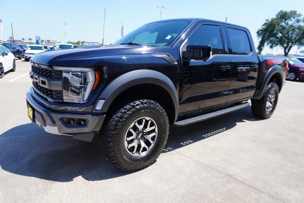 This 2023 Ford F-150 Raptor in Black Metallic includes the following features: 3.5L V6 EcoBoost 10-Speed Automatic 4WD Equipment Group 801A Standard, GVWR: 7,300 lbs Payload Package, Raptor Exterior Graphics Package, 4WD, 17" Cast Aluminum Wheels, 18 Speakers, 4-Wheel Disc Brakes, ABS brakes, Adaptive suspension, Adjustable pedals, Air Conditioning, Alloy wheels, AM/FM radio: SiriusXM with 360L, Auto High-beam Headlights, Auto tilt-away steering wheel, Auto-dimming door mirrors, Auto-dimming Rear-View mirror, Automatic temperature control, Brake assist, Bumpers: body-color, Compass, Delay-off headlights, Driver door bin, Driver vanity mirror, Dual front impact airbags, Dual front side impact airbags, Electronic Locking w/4.10 Axle Ratio, Electronic Stability Control, Emergency communication system, Exterior Parking Camera Rear, Front anti-roll bar, Front Bucket Seats, Front Center Armrest, Front dual zone A/C, Front fog lights, Front License Plate Bracket, Front reading lights, Front wheel independent suspension, Fully automatic headlights, Garage door transmitter, Heated door mirrors, Heated front seats, Heated rear seats, Heated steering wheel, Illuminated entry, Inclination/Intrusion Sensor Removal, Lane Departure Warning System, Leather Trim Seats w/Heated 2nd Row, Low tire pressure warning, Memory seat, Navigation system: Connected Navigation, Occupant sensing airbag, Outside temperature display, Overhead airbag, Overhead console, Panic alarm, Passenger door bin, Passenger vanity mirror, Pedal memory, Power door mirrors, Power driver seat, Power passenger seat, Power steering, Power windows, Radio data system, Radio: B&O Unleashed Sound System by Bang & Olufsen, Rain sensing wipers, Rear reading lights, Rear step bumper, Rear window defroster, Remote keyless entry, Security system, Speed control, Speed-sensing steering, Split folding rear seat, Steering wheel memory, Steering wheel mounted audio controls, SYNC 4 w/Enhanced Voice Recognition, Tachometer, Telescoping steering wheel, Tilt steering wheel, Traction control, Trip computer, Turn signal indicator mirrors, Variably intermittent wipers, and Ventilated front seats. Black Metallic CARFAX One-Owner. 2023 Ford F-150 Raptor 4WD 10-Speed Automatic 3.5L V6 EcoBoost 4WD.