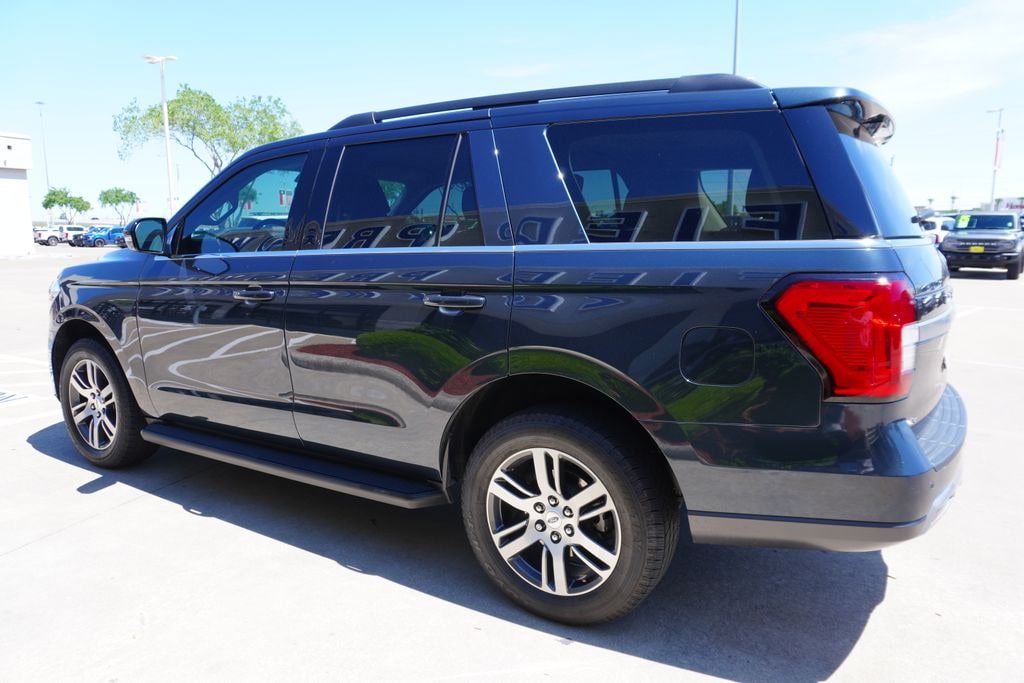 This 2024 Ford Expedition XLT in Blue Metallic includes the following features: EcoBoost 3.5L V6 GTDi DOHC 24V Twin Turbocharged 10-Speed Automatic RWD Equipment Group 202A High Package (110V/150W AC Power Outlet, 2nd Row Power-Folding Captain's Chairs, 3rd Row Vinyl Head Restraints, 4-Door Intelligent Access (Lock/Unlock), Accent Color Painted Rear Bumper, ActiveX-Trimmed 1st & 2nd Row Seats, Advanced Security Pack, Ambient Lighting, Heated Steering Wheel, Heated/Ventilated Front Seats, Power Liftgate, Power Tilt/Telescopic Steering Wheel w/Memory, Power-Adjustable Pedals w/Memory, Power-Folding Sideview Mirrors w/Autofold, Remote Start, SecuriCode Keyless Entry Pad, and Wireless Charging Pad), Special Edition Package (Intersection Assist, LED Fog Lamps w/Black Painted Bezel, LED Reflector Headlamps, Sideview Mirrors w/Turn Signal Indicators, Vinyl Center Console, and Wheels: 20" Bright Machined Aluminum), 18" Machined-Face Aluminum Wheels, 3.31 Axle Ratio, 3rd row seats: split-bench, 4-Wheel Disc Brakes, 6 Speakers, ABS brakes, Air Conditioning, Alloy wheels, AM/FM radio: SiriusXM with 360L, Auto High-beam Headlights, Auto-dimming Rear-View mirror, Automatic temperature control, Brake assist, Bumpers: body-color, Cloth Front Captain's Chairs, Compass, Connected Navigation, Delay-off headlights, Driver door bin, Driver vanity mirror, Dual front impact airbags, Dual front side impact airbags, Electronic Stability Control, Emergency communication system: SYNC 4 911 Assist, Evasive Steering, Exterior Parking Camera Rear, Four wheel independent suspension, Front anti-roll bar, Front Bucket Seats, Front Center Armrest, Front dual zone A/C, Front License Plate Bracket, Front Parking Sensors, Front reading lights, Fully automatic headlights, Garage door transmitter, Heated door mirrors, Illuminated entry, Intelligent Adaptive Cruise Control, Leather steering wheel, Low tire pressure warning, Navigation system: Connected Navigation, Occupant sensing airbag, Outside temperature display, Overhead airbag, Overhead console, Panic alarm, Passenger door bin, Passenger vanity mirror, Power door mirrors, Power driver seat, Power steering, Power windows, Radio data system, Radio: AM/FM Stereo w/MP3 Capable, Rear air conditioning, Rear anti-roll bar, Rear reading lights, Rear window defroster, Rear window wiper, Reclining 3rd row seat, Remote keyless entry, Security system, SiriusXM w/360L, Speed control, Speed-sensing steering, Speed-Sensitive Wipers, Split folding rear seat, Spoiler, Steering wheel mounted audio controls, SYNC 4 w/Enhanced Voice Recognition, Tachometer, Telescoping steering wheel, Tilt steering wheel, Traction control, Trip computer, Variably intermittent wipers, and Voltmeter. Blue Metallic CARFAX One-Owner. 2024 Ford Expedition XLT RWD 10-Speed Automatic EcoBoost 3.5L V6 GTDi DOHC 24V Twin Turbocharged