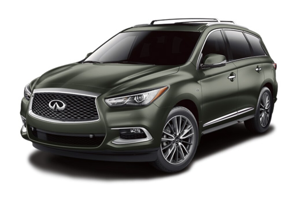 This 2016 INFINITI QX60 in Jade Green includes the following features: 3.5L V6 Sport-Tuned CVT FWD Cargo Package w/Premium Plus Pkg (Cargo Protector, First Aid Kit, and Rear Cargo Cover), Premium Package (2-Way Driver's Seat Power Lumbar Support, BOSE 13-speaker Premium Audio System including Radio: AM/FM/CD/DVD w/MP3 Playback Capability, Dual Occupant Memory System, Enhanced Intelligent Key Memory, Entry & Exit Assist, Heated Steering Wheel, Outside Mirrors w/Reverse Tilt-Down Feature, Rear Bumper Protector & Roof Rails, and Remote Engine Start), Premium Plus Package (Around View Monitor w/Front & Rear Sonar System, Illuminated Kick Plates, INFINITI Navigation System including XM NavTraffic and NavWeather with real time information, INFINITI Voice Recognition, Rain-Sensing Front Windshield Wipers, and Single In-Dash CD Player), 3rd row seats: bench, 4-Wheel Disc Brakes, 5.17 Axle Ratio, 6 Speakers, ABS brakes, Activation Disclaimer, Air Conditioning, Alloy wheels, AM/FM radio: SiriusXM, AM/FM/CD/MP3 Audio System, Auto-dimming Rear-View mirror, Automatic temperature control, Bodyside moldings, Brake assist, Bumpers: body-color, Carpeted Floor Mats (4-Piece Set), CD player, Delay-off headlights, Driver door bin, Driver vanity mirror, Dual front impact airbags, Dual front side impact airbags, Electronic Stability Control, Four wheel independent suspension, Front anti-roll bar, Front Bucket Seats, Front Center Armrest w/Storage, Front dual zone A/C, Front fog lights, Front reading lights, Fully automatic headlights, Garage door transmitter, Heated door mirrors, Heated Front Seats, Heated front seats, High intensity discharge headlights: Bi-Xenon, Illuminated entry, Leather Shift Knob, Leather steering wheel, Leather-Appointed Seats, Literature Kit, Low tire pressure warning, Occupant sensing airbag, Outside temperature display, Overhead airbag, Overhead console, Panic alarm, Passenger door bin, Passenger vanity mirror, Power door mirrors, Power driver seat, Power Liftgate, Power moonroof, Power passenger seat, Power steering, Power windows, Radio data system, Rear air conditioning, Rear anti-roll bar, Rear reading lights, Rear seat center armrest, Rear window defroster, Rear window wiper, Reclining 3rd row seat, Remote keyless entry, Security system, Speed control, Speed-sensing steering, Speed-Sensitive Wipers, Splash Guards (Color-Matched Set of 4), Split folding rear seat, Spoiler, Steering wheel mounted audio controls, Tachometer, Telescoping steering wheel, Tilt steering wheel, Traction control, Trip computer, Turn signal indicator mirrors, Variably intermittent wipers, and Wheels: 18" Triple 5-Spoke Aluminum-Alloy. Jade Green 2016 INFINITI QX60 FWD Sport-Tuned CVT 3.5L V6