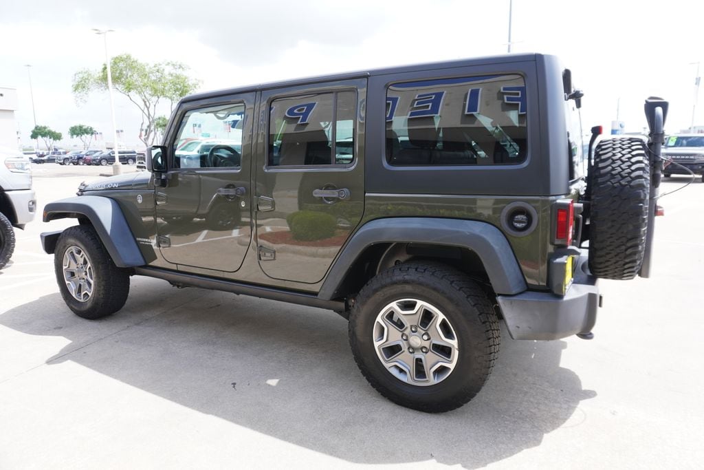This 2016 Jeep Wrangler Unlimited Rubicon in Tank Clearcoat includes the following features: 3.6L V6 24V VVT 5-Speed Automatic 4WD Connectivity Group (Leather Wrapped Steering Wheel, Remote USB Port, Tire Pressure Monitoring Display, Uconnect Voice Command w/Bluetooth, and Vehicle Information Center), Max Tow Package (Class II Receiver Hitch and Trailer Tow w/4-Pin Connector Wiring), Quick Order Package 24R, 17" x 7.5" Polished Mineral Gray Wheels, 3.73 Rear Axle Ratio, 4-Wheel Disc Brakes, 40GB Hard Drive w/28GB Available, 5-Year SiriusXM Travel Link Service, 6.5" Touchscreen Display, 8 Speakers, ABS brakes, Air Conditioning, Alloy wheels, AM/FM radio: SiriusXM, Audio Jack Input for Mobile Devices, Auto-dimming Rear-View mirror, Black 3-Piece Hard Top, Brake assist, CD player, Cloth Seats w/Adjustable Head Restraints, Compass, Delete Sunrider Soft Top, Driver door bin, Driver vanity mirror, Dual front impact airbags, Electronic Stability Control, Freedom Panel Storage Bag, Front anti-roll bar, Front Bucket Seats, Front Center Armrest w/Storage, Front fog lights, Front reading lights, Fully automatic headlights, GPS Navigation, Heated door mirrors, Heated Front Seats, Illuminated entry, Integrated roll-over protection, Leather steering wheel, Low tire pressure warning, MOPAR Slush Mats, Occupant sensing airbag, Outside temperature display, Panic alarm, Passenger door bin, Passenger vanity mirror, Performance Suspension, Power door mirrors, Power steering, Power windows, Radio data system, Radio: 130, Radio: 430N, Rear anti-roll bar, Rear Window Defroster, Rear Window Wiper/Washer, Remote keyless entry, Remote Start System, Security system, SiriusXM Travel Link, Speed control, Split folding rear seat, Steering wheel mounted audio controls, Sunrider Soft Top, Tachometer, Tilt steering wheel, Traction control, Trip computer, and Variably intermittent wipers. Tank Clearcoat CARFAX One-Owner. 2016 Jeep Wrangler Unlimited Rubicon 4WD 5-Speed Automatic 3.6L V6 24V VVT