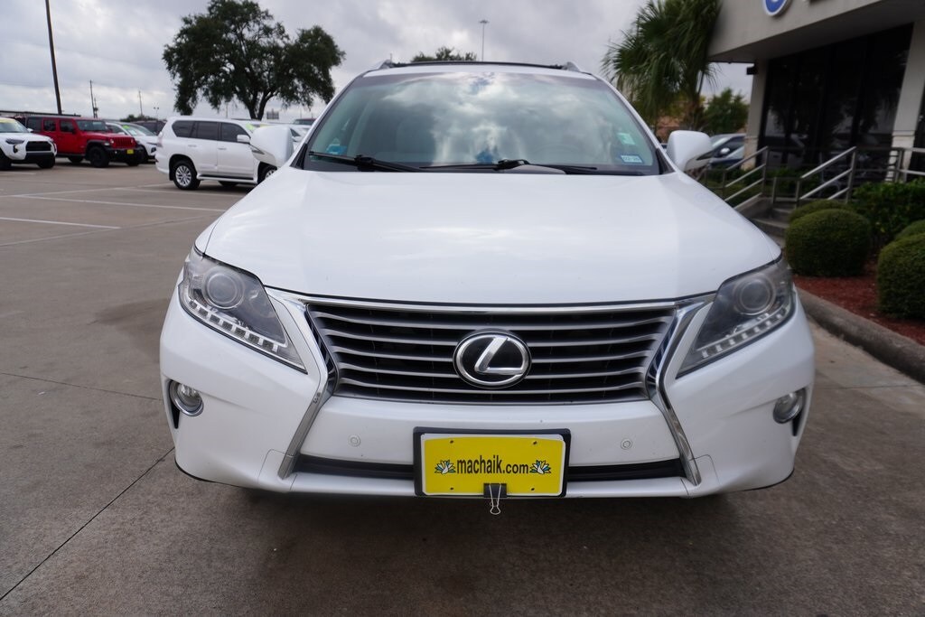 This 2014 Lexus RX 350 in White includes the following features: 3.5L V6 DOHC Dual VVT-i 24V 6-Speed Automatic with Sequential Shift ECT-i FWD Cloth, 18" x 7.5" 5-Spoke Aluminum Wheels, 4-Wheel Disc Brakes, 4.398 Axle Ratio, 9 Speakers, ABS brakes, Air Conditioning, Alloy wheels, AM/FM radio: SiriusXM, Anti-whiplash front head restraints, Auto-dimming door mirrors, Auto-dimming Rear-View mirror, Automatic temperature control, Bluetooth® Hands-Free Phone, Brake assist, Bumpers: body-color, CD player, Compass, Delay-off headlights, Driver door bin, Driver vanity mirror, Dual front impact airbags, Dual front side impact airbags, Electronic Stability Control, Emergency communication system: Safety Connect, Fabric Seat Trim, Four wheel independent suspension, Front anti-roll bar, Front Bucket Seats, Front Center Armrest, Front dual zone A/C, Front fog lights, Front reading lights, Fully automatic headlights, Garage door transmitter: HomeLink, Genuine wood console insert, Genuine wood door panel insert, Heated door mirrors, Illuminated entry, Knee airbag, Low tire pressure warning, Occupant sensing airbag, Outside temperature display, Overhead airbag, Overhead console, Panic alarm, Passenger door bin, Passenger vanity mirror, Power door mirrors, Power driver seat, Power Liftgate, Power passenger seat, Power steering, Power windows, Radio data system, Radio: Prem AM/FM Audio w/Single CD Player, Rear anti-roll bar, Rear reading lights, Rear seat center armrest, Rear side impact airbag, Rear window defroster, Rear window wiper, Remote keyless entry, Security system, Speed control, Speed-sensing steering, Split folding rear seat, Spoiler, Steering wheel mounted audio controls, Tachometer, Telescoping steering wheel, Tilt steering wheel, Traction control, Trip computer, Turn signal indicator mirrors, and Variably intermittent wipers. White CARFAX One-Owner. 2014 Lexus RX 350 FWD 6-Speed Automatic with Sequential Shift ECT-i 3.5L V6 DOHC Dual VVT-i 24V Cloth.
