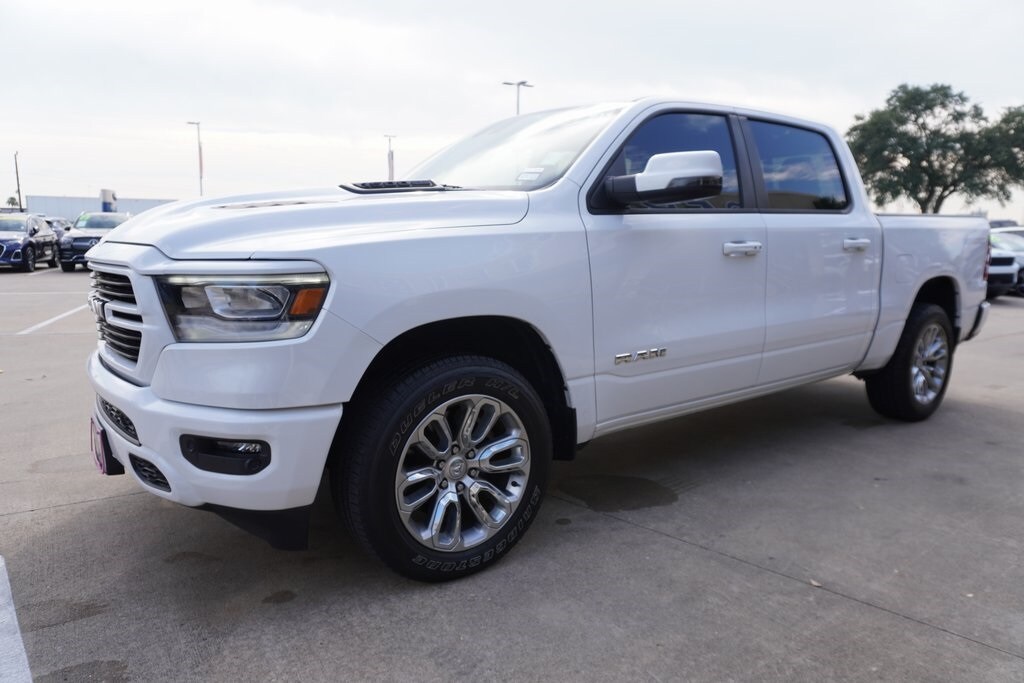 This 2023 Ram 1500 Laramie in Bright White Clearcoat includes the following features: HEMI 5.7L V8 Multi Displacement VVT eTorque 8-Speed Automatic 4WD Laramie Level 1 Equipment Group (12" Touchscreen Display, 2nd Row In Floor Storage Bins, 4G LTE Wi-Fi Hot Spot, Apple CarPlay, Auto High Beam Headlamp Control, Blind Spot & Cross Path Detection, Connected Travel & Traffic Services, Connectivity - US/Canada, Disassociated Touchscreen Display, Electric Shift-On-Demand Transfer Case, Foam Bottle Insert (Door Trim Panel), For Details, Visit DriveUconnect.com, For More Info, Call 800-643-2112, Front Door Accent Lighting, Front LED Fog Lamps, Global Telematics Box Module (TBM), Google Android Auto, GPS Antenna Input, GPS Navigation, HD Radio, Integrated Center Stack Radio, Integrated Voice Command w/Bluetooth, LED Reflector Headlamps, Radio: Uconnect 5 Nav w/12.0" Display, Rain Sensitive Windshield Wipers, Rear Door Accent Lighting, Rear Power Sliding Window, Rear Window Defroster, Remote Tailgate Release, SiriusXM Radio Service, SiriusXM w/360L, and USB Host Flip), Quick Order Package 27H Laramie, Sport Appearance Package (Black Interior Accents, Body Color Exterior Mirrors, Body Color Front Bumper, Body Color Premium Power Mirrors, Body Color Rear Bumper w/Step Pads, Grille Surround 3 Body Color Tex 2 Black, RAM Grille Badge - Chrome, Sport Decal, Sport Performance Hood, and Wheels: 20" x 9" Premium Painted w/Inserts), #1 Seat Foam Cushion, 10 Speakers, 3 Rear Seat Head Restraints, 3.21 Rear Axle Ratio, 4 Way Front Headrests, 4-Wheel Disc Brakes, 48V Belt Starter Generator, ABS brakes, Adjustable pedals, Air Conditioning, Alloy wheels, AM/FM radio: SiriusXM with 360L, Apple CarPlay/Android Auto, Audio memory, Auto-dimming door mirrors, Auto-Dimming Exterior Driver Mirror, Auto-dimming Rear-View mirror, Automatic temperature control, Brake assist, Bumpers: chrome, Chrome Exterior Mirrors, Compass, Convex Wide-Angle Exterior Mirror Insert, Delay-off headlights, Driver door bin, Driver Seat Memory, Driver vanity mirror, Dual front impact airbags, Dual front side impact airbags, Electronic Stability Control, Exterior Mirrors Courtesy Lamps, Exterior Mirrors w/Heating Element, Exterior Mirrors w/Memory, Exterior Mirrors w/Supplemental Signals, Front anti-roll bar, Front Center Armrest w/Storage, Front dual zone A/C, Front fog lights, Front License Plate Bracket, Front reading lights, Front Seat Back Map Pockets, Front wheel independent suspension, Fully automatic headlights, Garage door transmitter, Heated door mirrors, Heated Front Seats, Heated front seats, Heated Steering Wheel, Heated steering wheel, Illuminated entry, Leather steering wheel, Leather Trim 40/20/40 Bench Seat, Low tire pressure warning, Manufacturer's Statement of Origin, Memory seat, Navigation System, Occupant sensing airbag, Outside temperature display, Overhead airbag, Overhead console, Panic alarm, ParkSense Front/Rear Park Assist w/Stop (DISC), ParkView Rear Back-Up Camera, Passenger door bin, Passenger vanity mirror, Pedal memory, Power 2-Way Driver Lumbar Adjust, Power 2-Way Passenger Lumbar Adjust, Power 8-Way Driver & Passenger Seats, Power door mirrors, Power driver seat, Power passenger seat, Power steering, Power windows, Power-Folding Mirrors, Radio data system, Radio: Uconnect 5 Nav w/8.4" Display, Rear 60/40 Folding Seat, Rear anti-roll bar, Rear seat center armrest, Rear step bumper, Remote keyless entry, Security system, Speed control, Split folding rear seat, Steering wheel mounted audio controls, Tachometer, Telescoping steering wheel, Tilt steering wheel, Traction control, Trip computer, Turn signal indicator mirrors, Variably intermittent wipers, Ventilated Front Seats, Ventilated front seats, Voltmeter, and Wheels: 18" x 8" Aluminum Base PainteD. Bright White Clearcoat CARFAX One-Owner. 2023 Ram 1500 Laramie 4WD 8-Speed Automatic HEMI 5.7L V8 Multi Displacement VVT eTorque